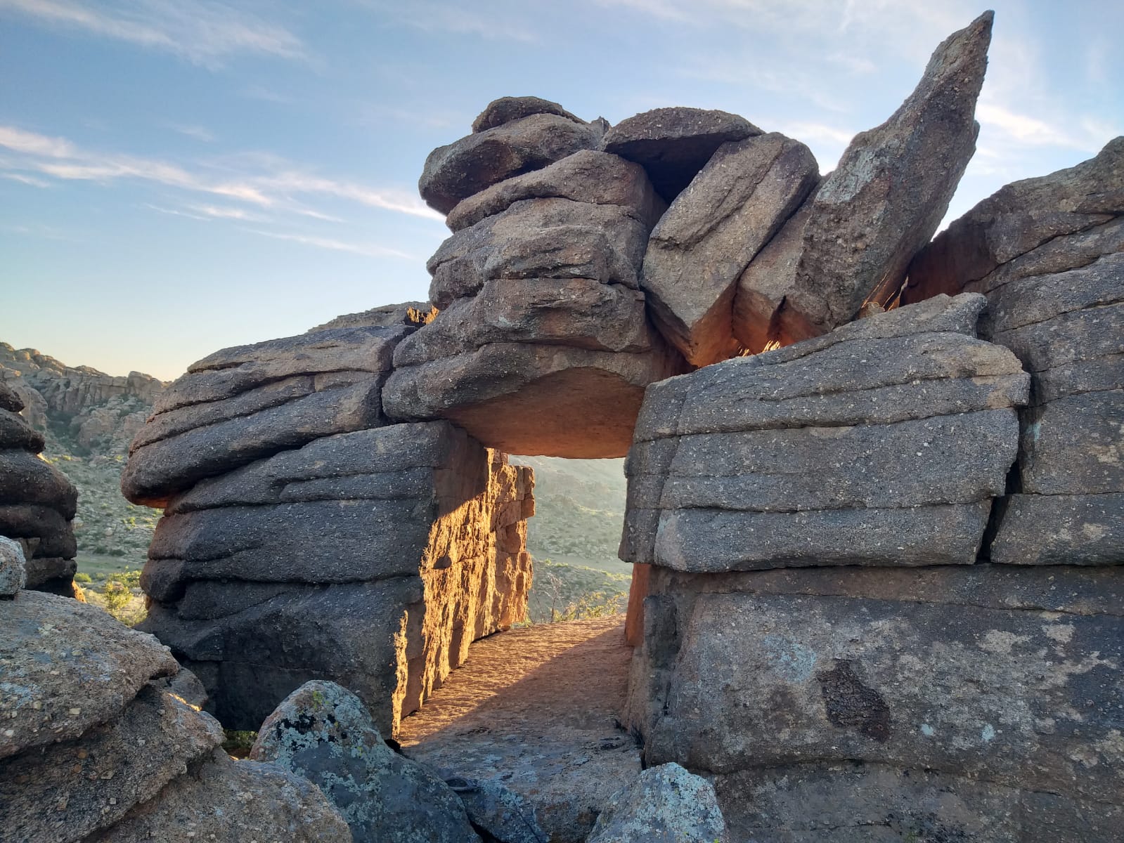 Y, de hecho, a pesar de que la ruina se encuentra entre rocas altas, lejos de cualquier lugar poblado: de repente mi teléfono celular suena y mi esposa, Clemencia, está en el teléfono de What’sApp. Ambos casi no podemos creerlo, pero la conexión es excelente y hablamos durante bastante tiempo, después de más de dos meses de separación, hay mucho que contar.