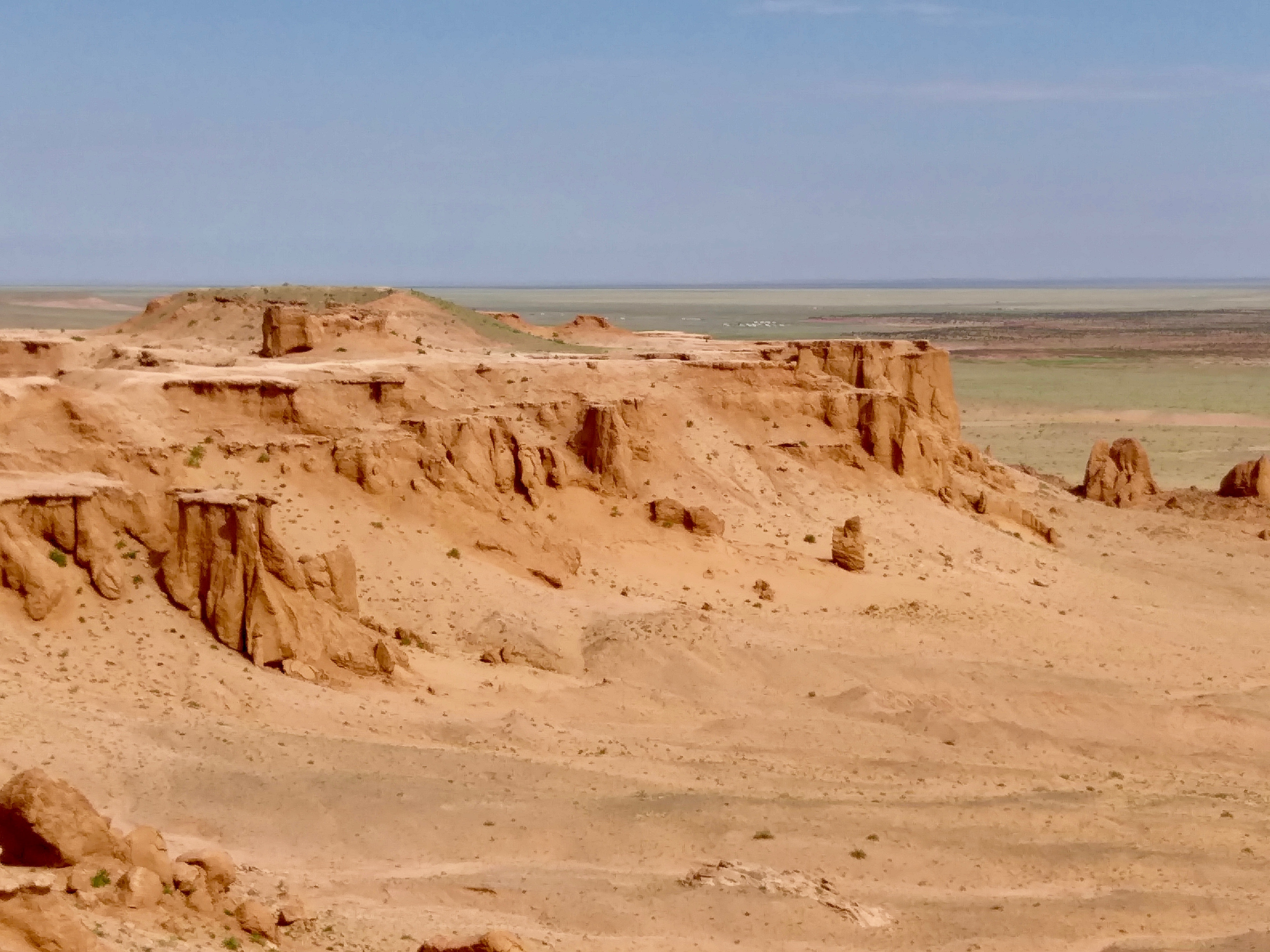 Natürlich gibt es in der Gobi nicht nur Eis, sondern vor allem viel Sand. z.B. dort, wo sich das Khongoryn Els erstreckt. Ich selbst schaffe die Besteigung der steilen und hohen Dünen nicht, aber Werner hat diese schönen Fotos vom höchsten Punkt der ersten Düne aus gemacht: