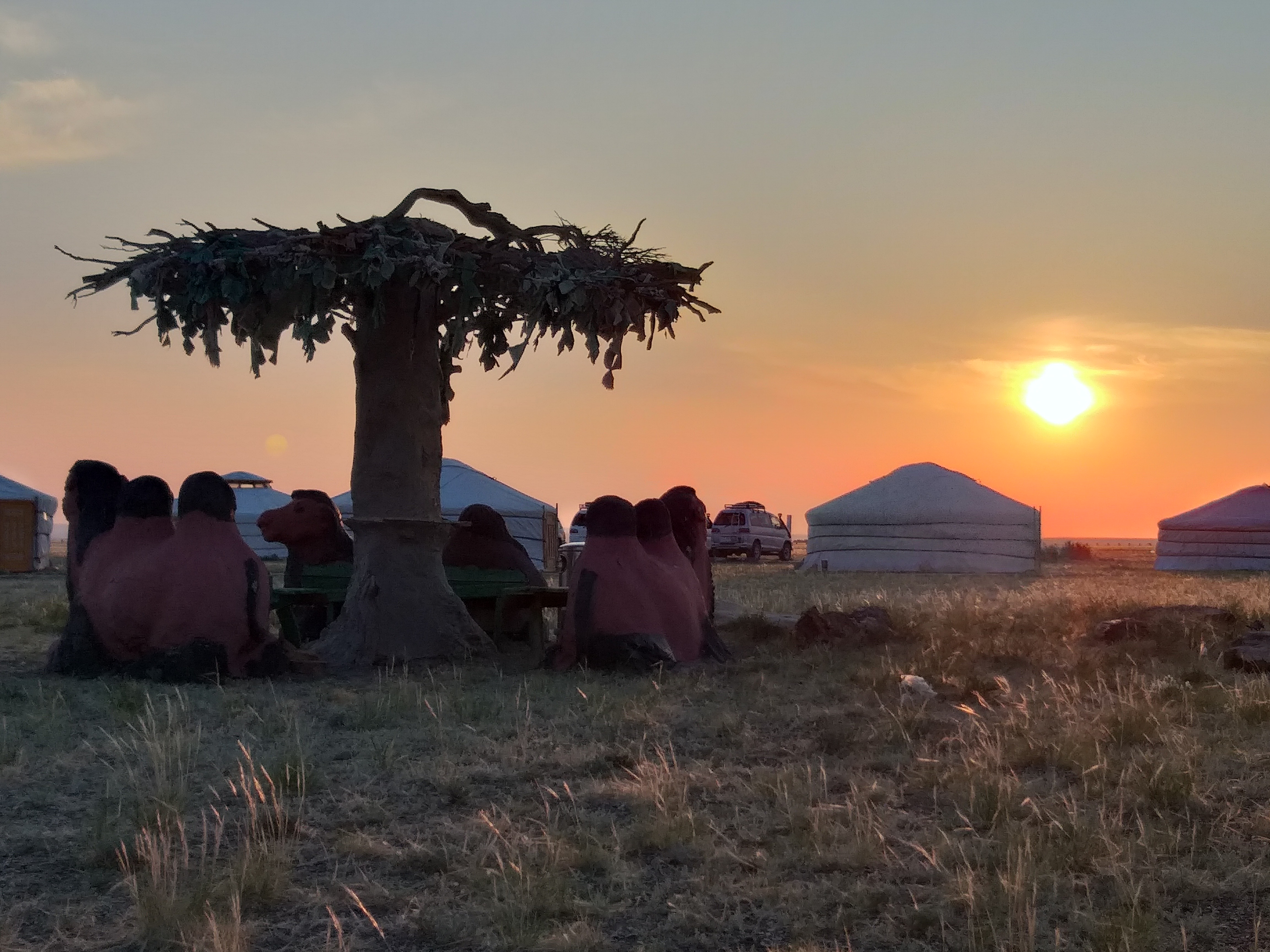 Towards evening, Horst and Helga seek a place in the valley, in front of the rocks; we stay overnight at a nearby ger camp.