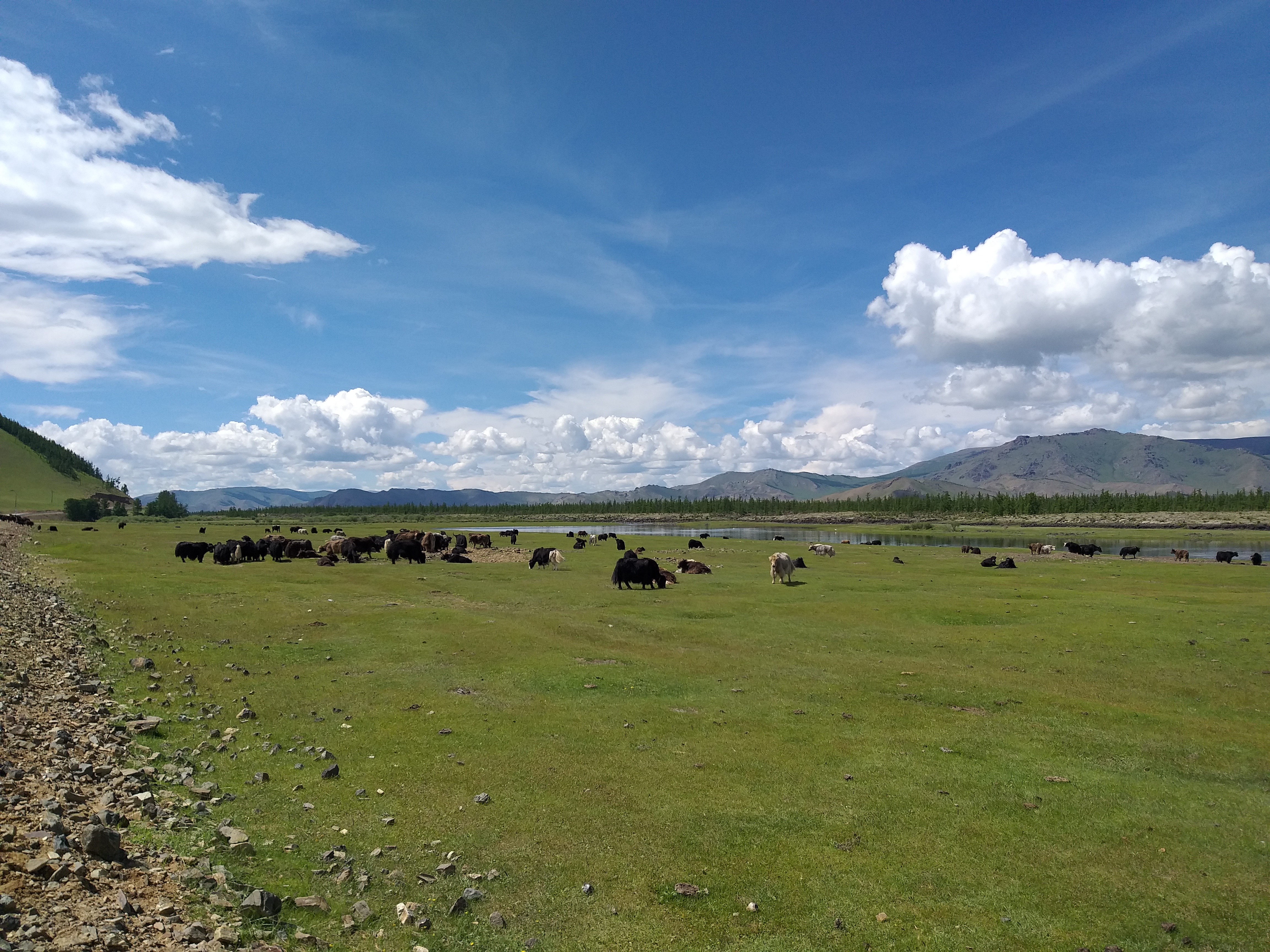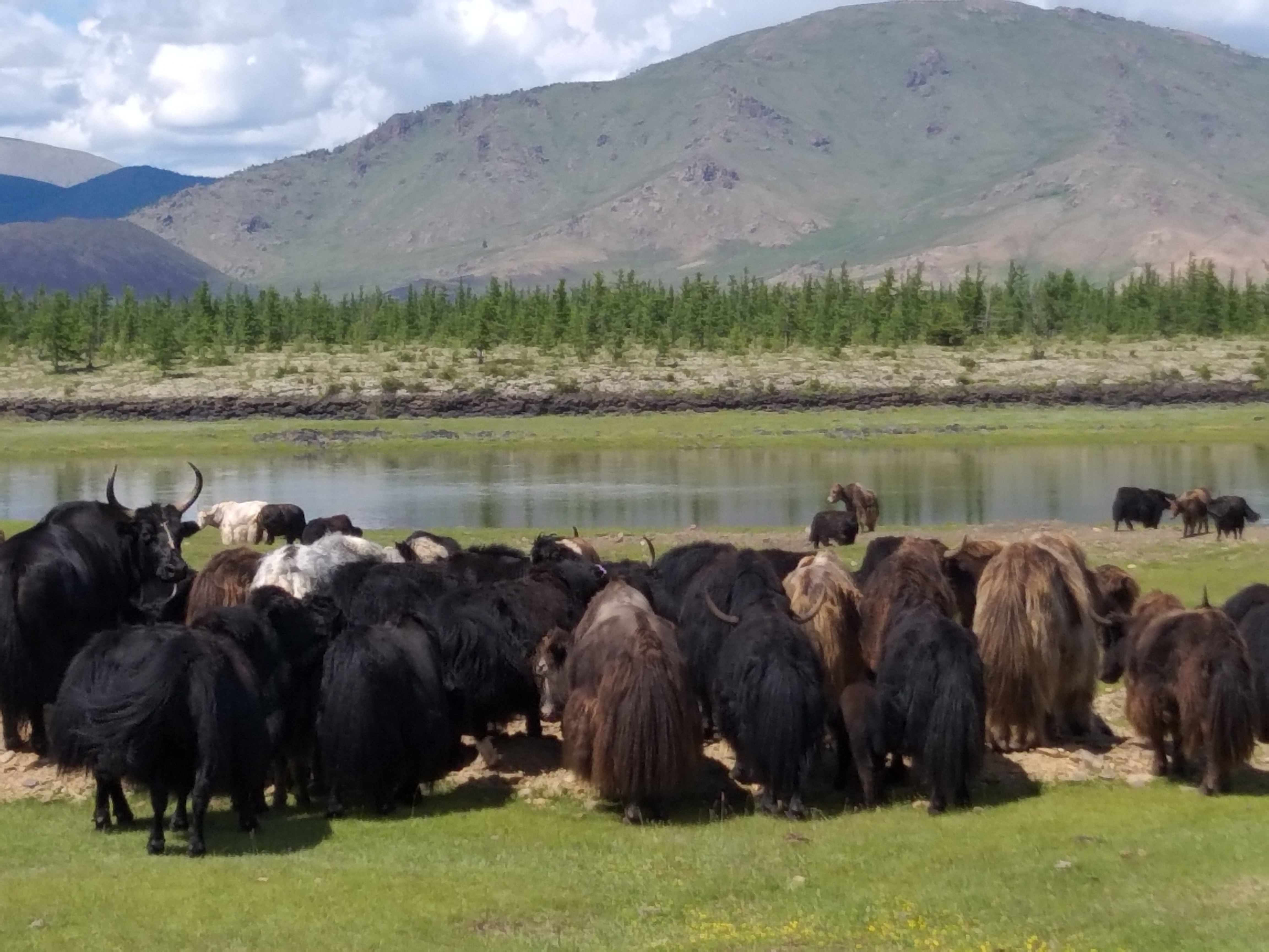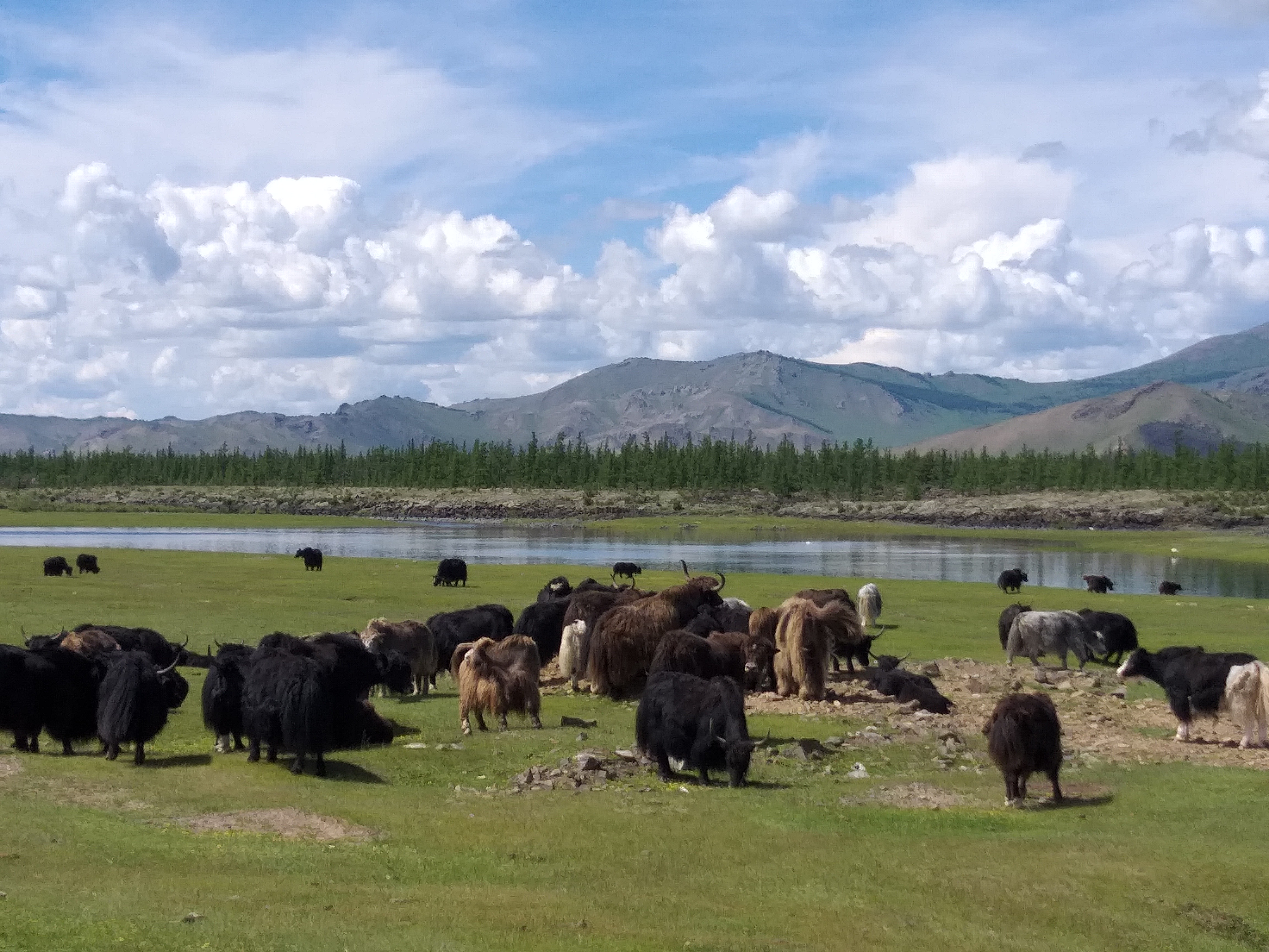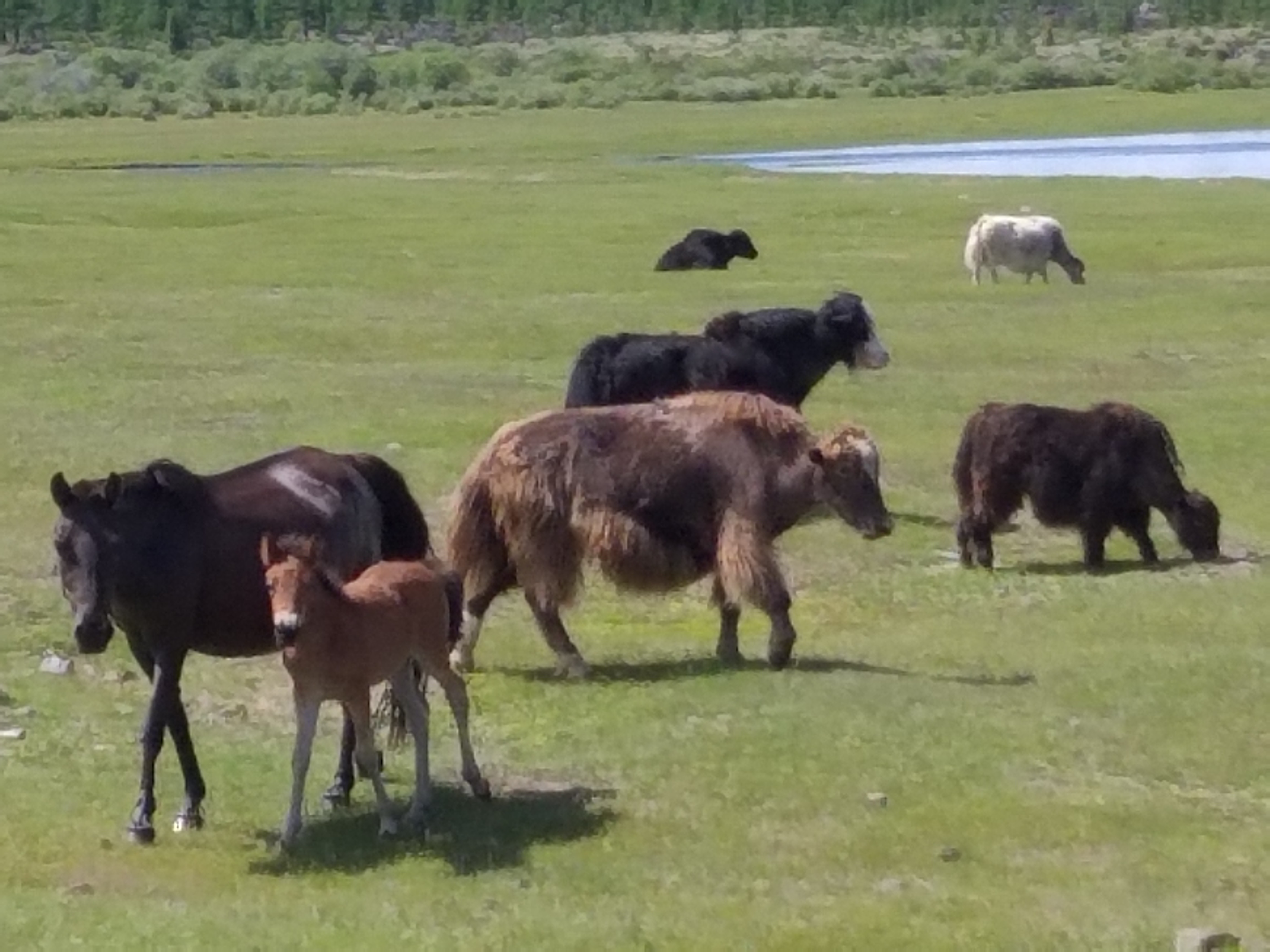 Horses, camels, yaks, sheep and goats and sometimes cows characterize many landscapes in Mongolia: