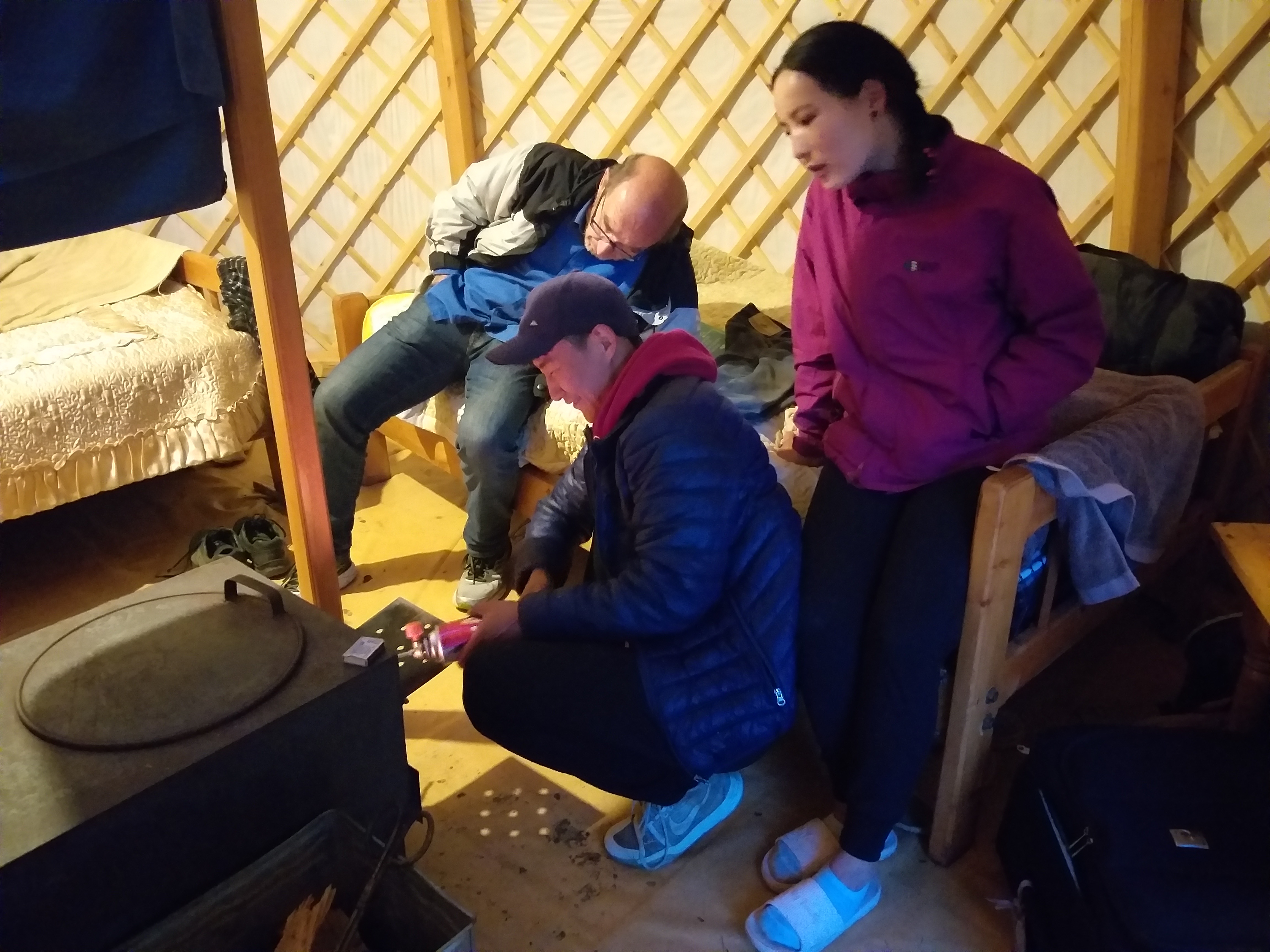 Am späten Nachmittag erreichen wir gerade noch ein Ger-Camp, wo Werner und ich Quartier beziehen, bevor es so richtig losgeht: