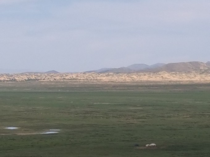 Already on the long track to the dunes the weather gets worse and worse. It is raining (in the Gobi !!!) and strong wind comes up: