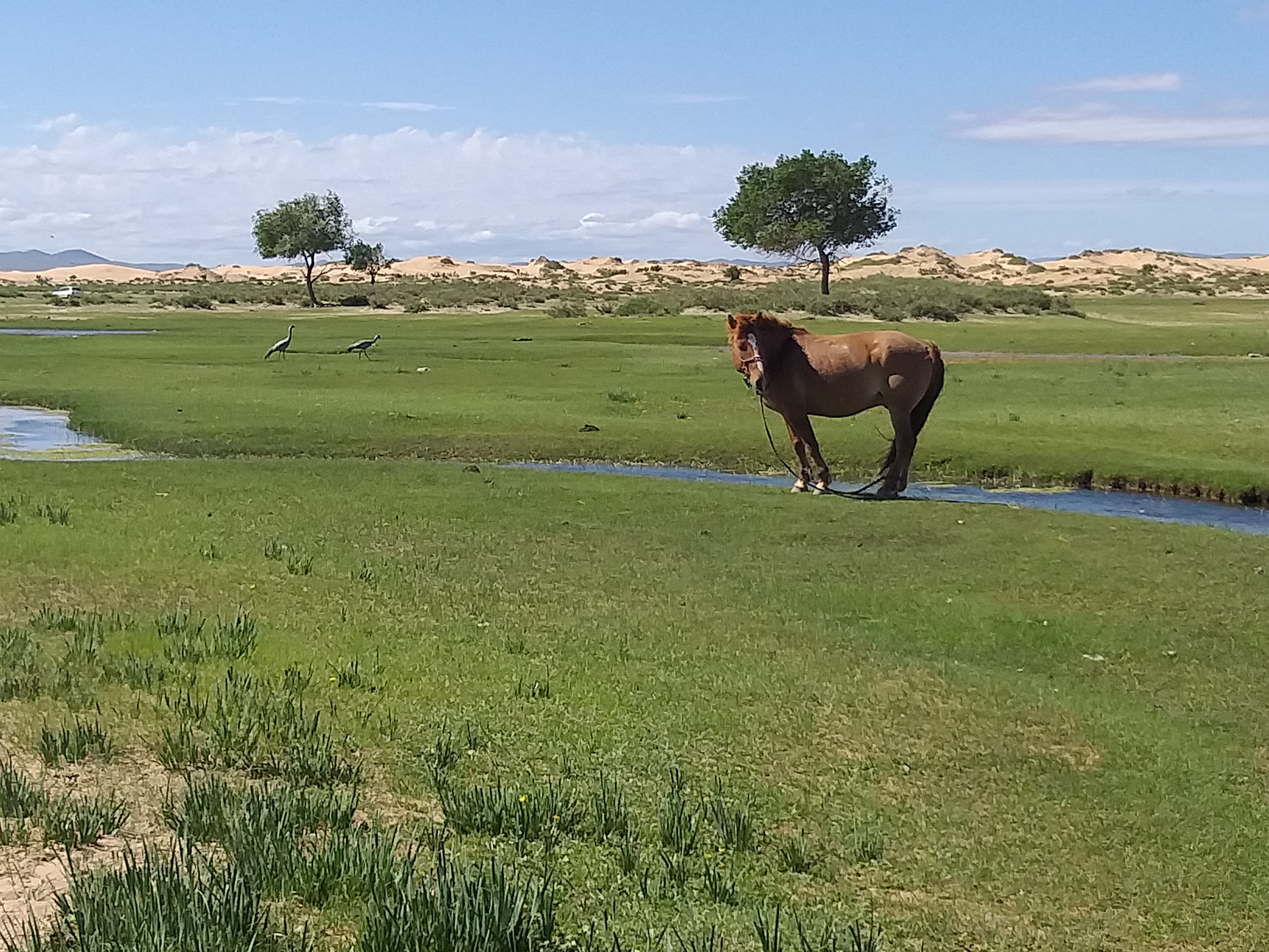 Primero visitamos el Parque Nacional de Hustain. Con 50,000 hectáreas, es el parque nacional más pequeño de Mongolia. Sin embargo, vale la pena verlo, porque aquí vive una parte del total de casi setecientos caballos salvajes reales que aún existen en Mongolia.