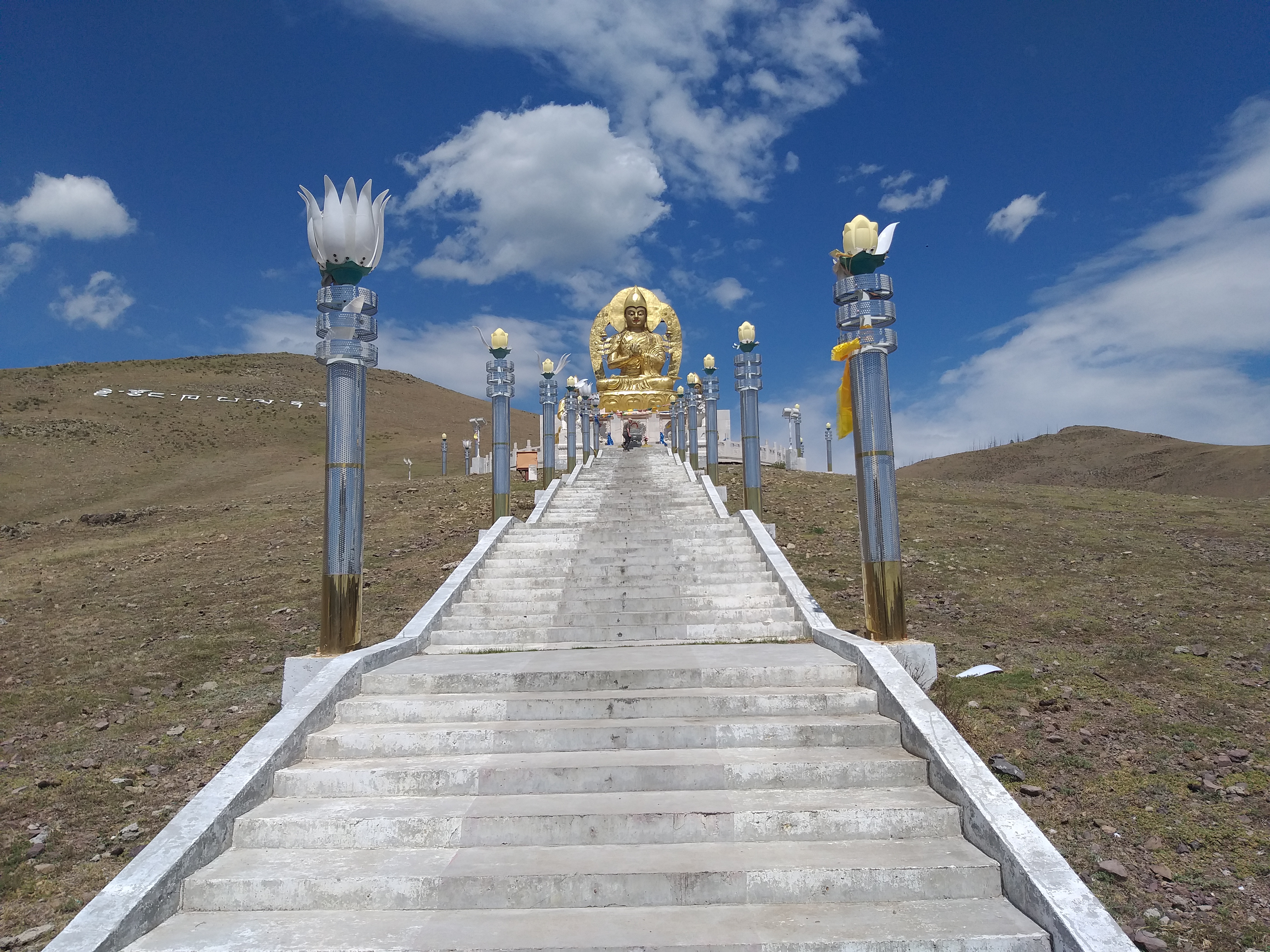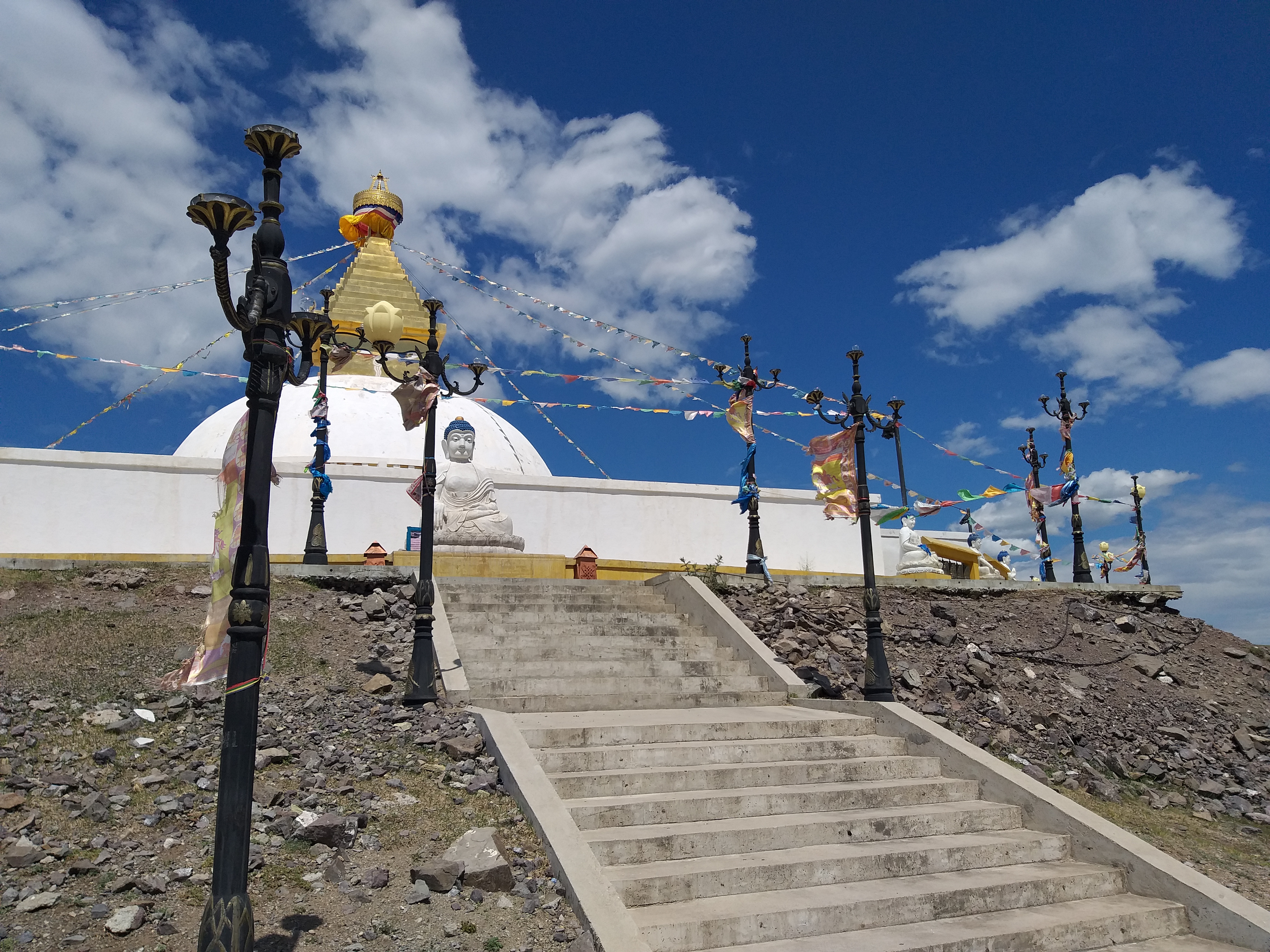 Antes de llegar a Charchorin, visitamos el monasterio Shanhk. Se encuentra en el borde de la carretera principal y parece descuidado. Una vista triste, especialmente con el clima lluvioso que prevalece aquí hoy: