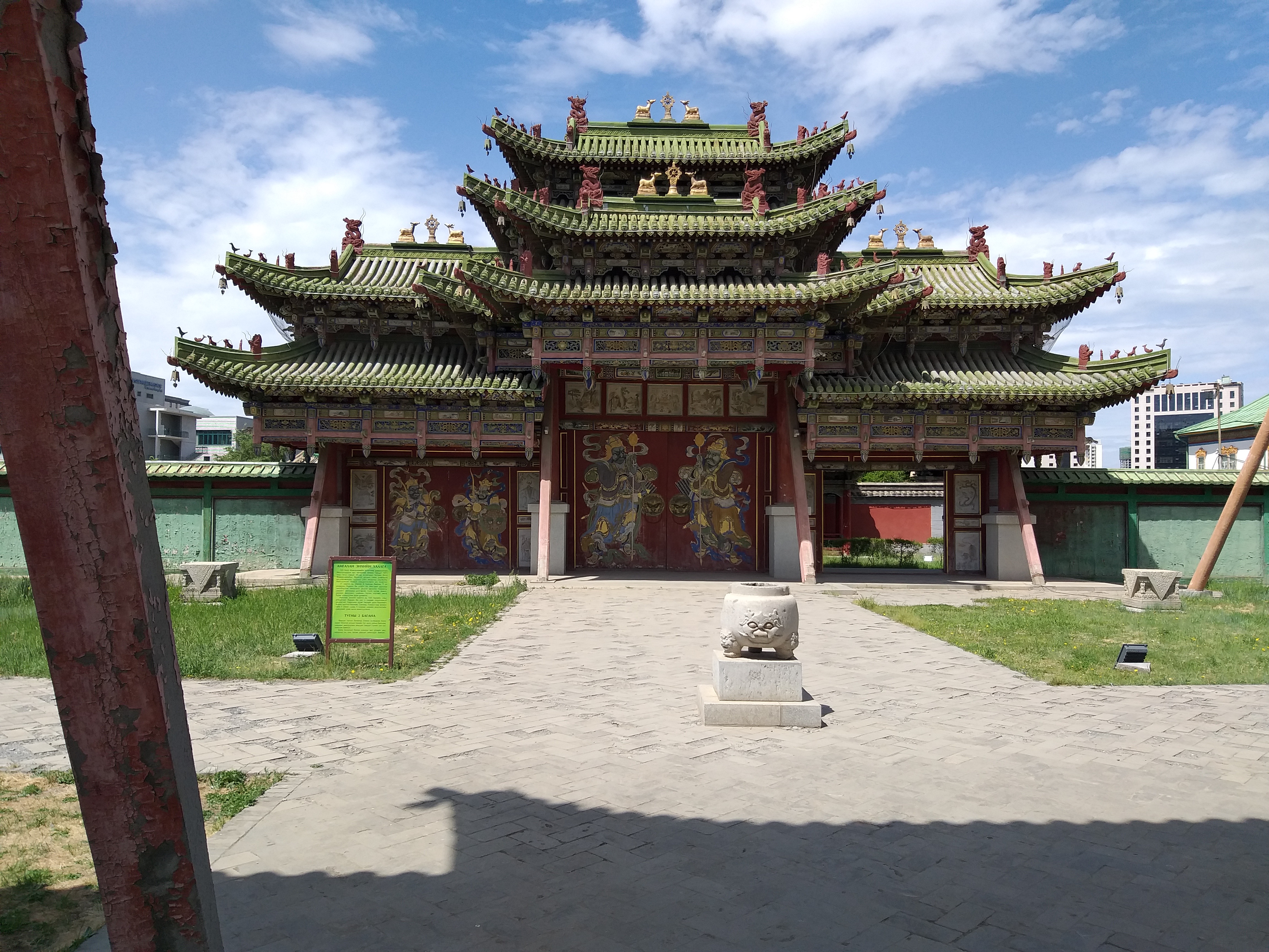 During the 1930s, under the Soviet regime, thousands of monasteries were destroyed and tens of thousands of monks were killed. With the collapse of the Soviet Union, Buddhism gradually returned to the country. Nevertheless, there are only a few active monasteries in Mongolia today. Some others are still preserved, but today they are museums like the Tschoidschin Lama Temple Museum, which is located between a complex of modern highrises:
